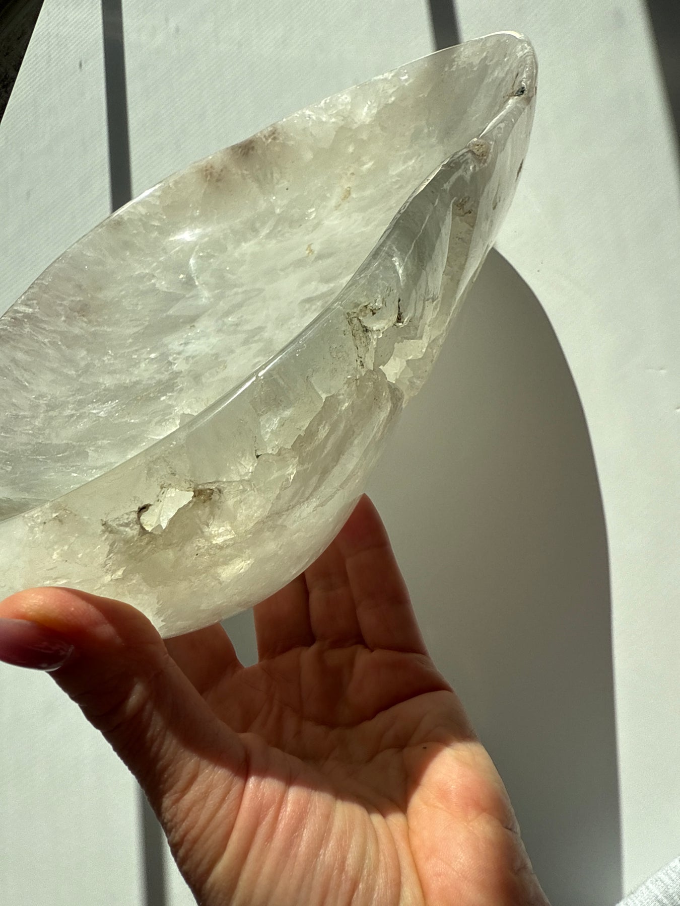 Pink Amethyst brings a softer, more emotional quality to the bowl, while the Quartz adds a cleaner, steadier layer. Together they create a balanced energy that feels grounded and usable. Many people keep bowls like this on their nightstand, altar, or vanity because they hold jewelry, crystals, and small personal items without making the space feel cluttered. The bowl gives everything inside it a defined place to land, and over time it naturally becomes part of your daily routine.
