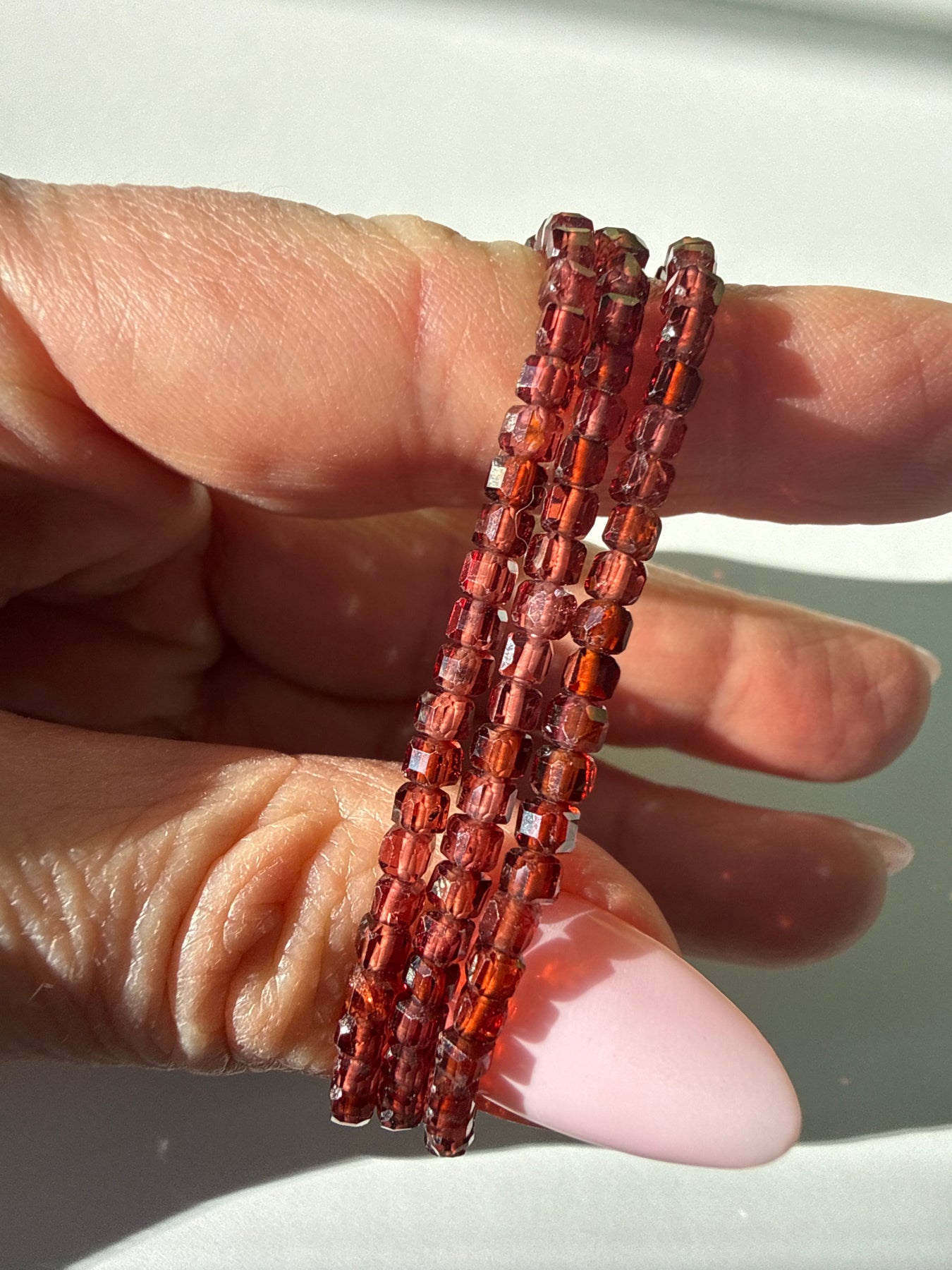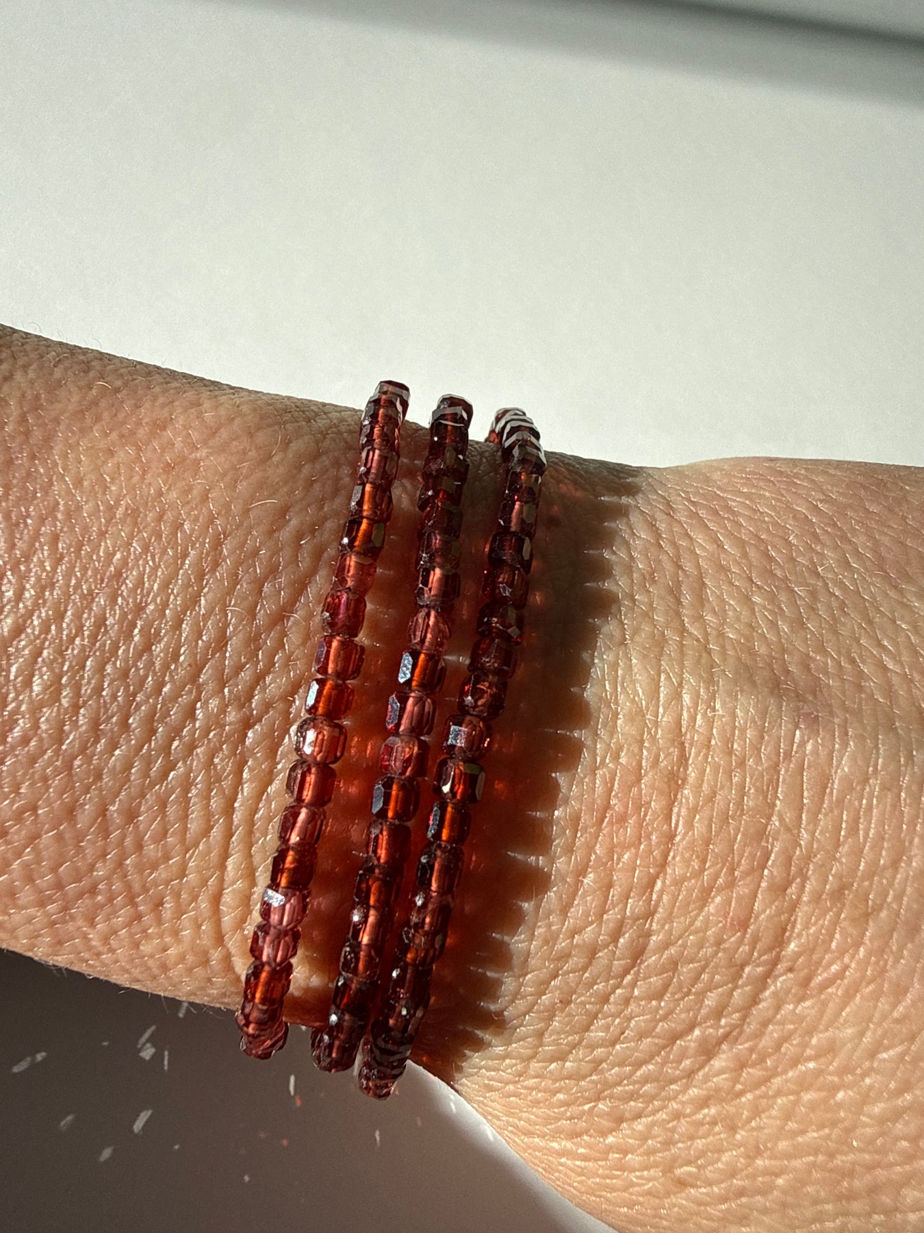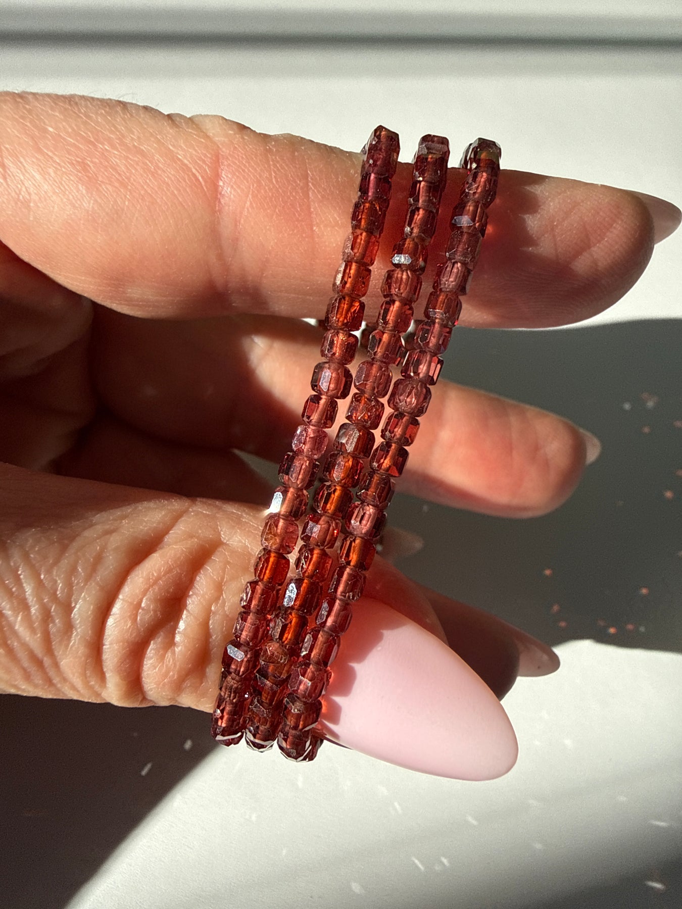 This listing is for one bracelet made with 3mm Garnet cube beads.