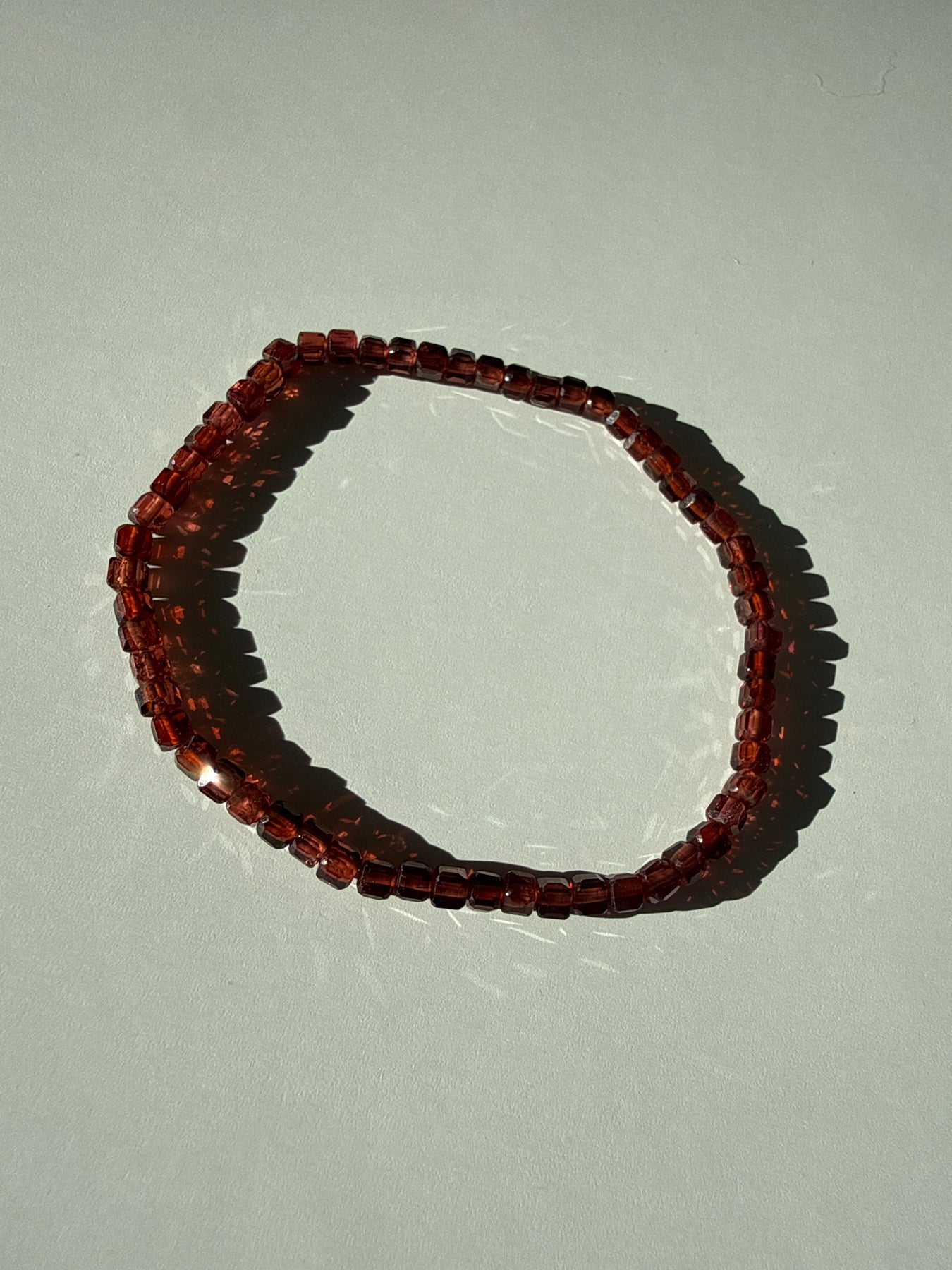Each bracelet is assembled with care using high quality elastic and natural Garnet cube beads. Before leaving my hands, every piece is energetically cleansed and attuned through methods unique to my personal practice so that it arrives prepared to support the energetic intentions of its new wearer.