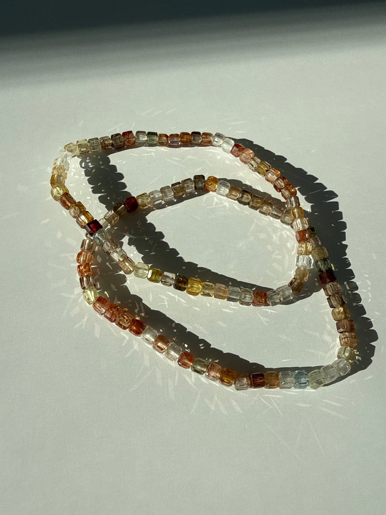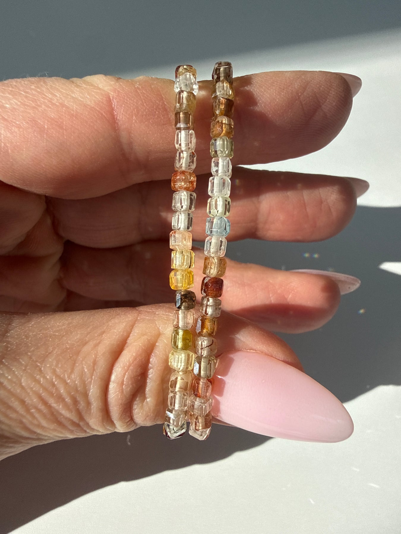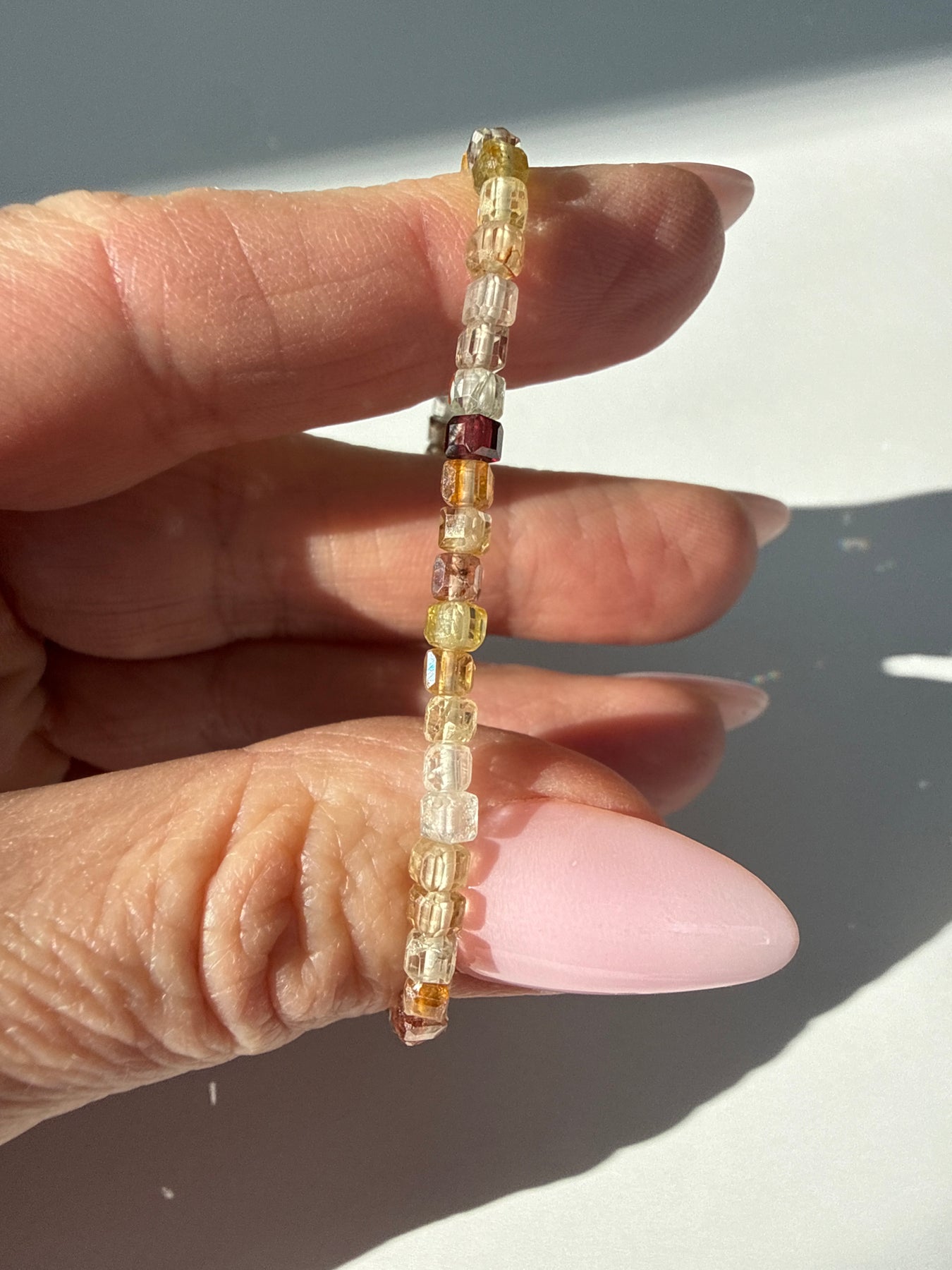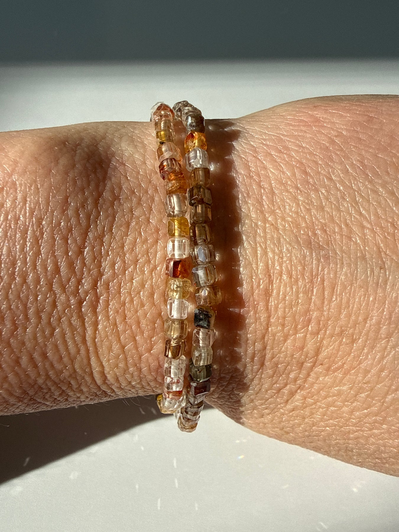 Each bracelet is assembled with care using high quality elastic and natural Zircon cube beads. Before leaving my hands, every piece is energetically cleansed and attuned through methods unique to my personal practice so that it arrives prepared to support the energetic intentions of its new wearer.