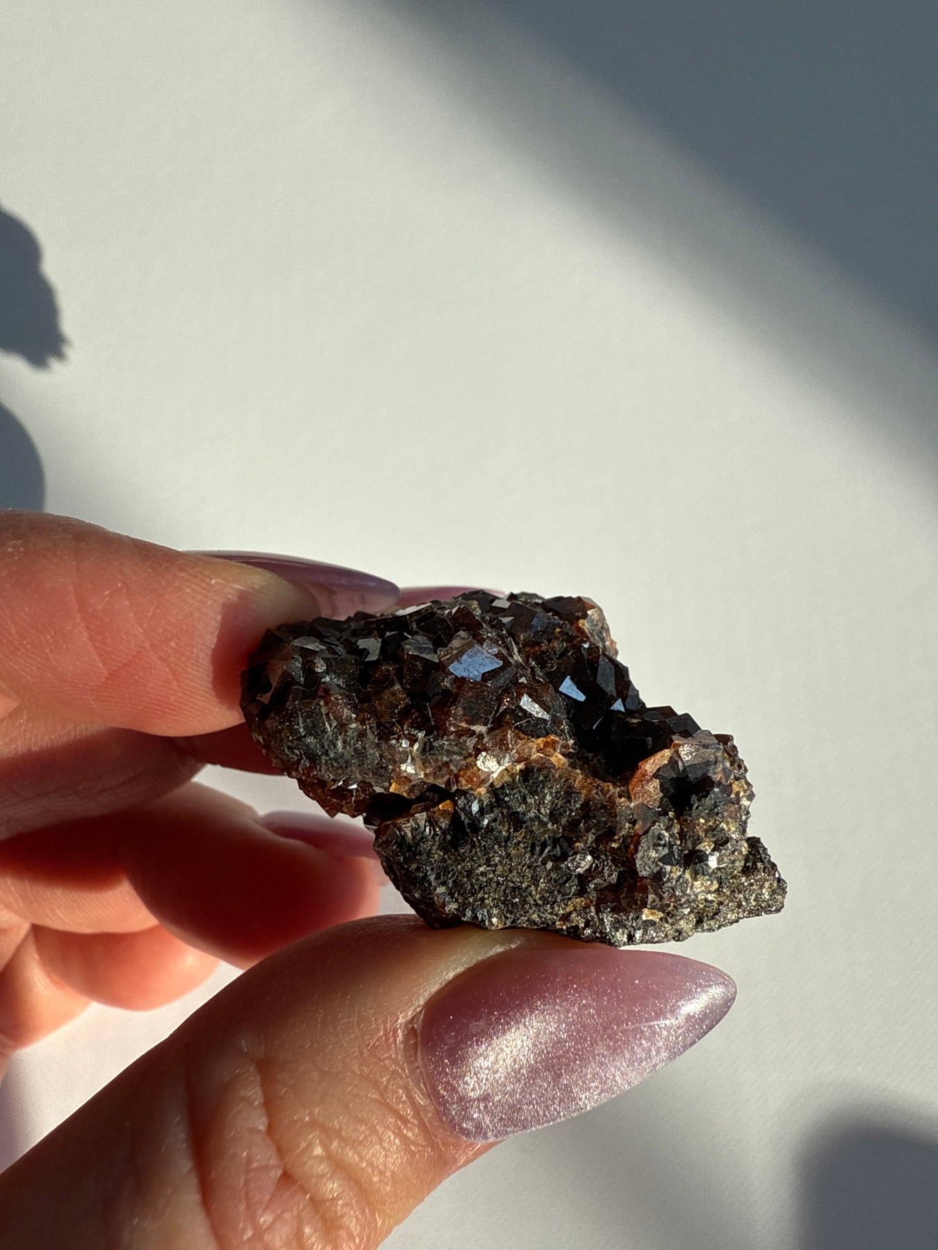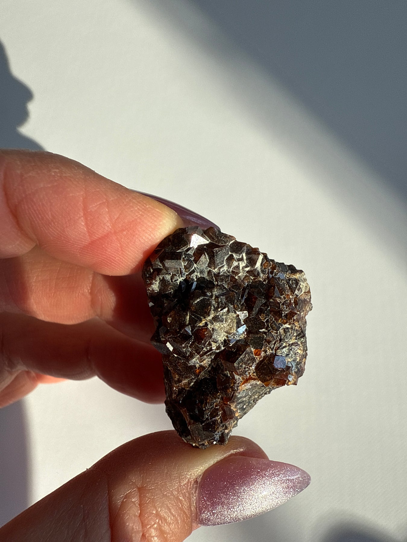 Garnet is a stone of deep personal power, known for its ability to boost confidence, increase vitality, and ignite a sense of security within the wearer. Its rich, polished surface reflects the strength it instills, especially when carried close to the body, whether in a pocket, or held during meditation for a more intimate energetic connection.