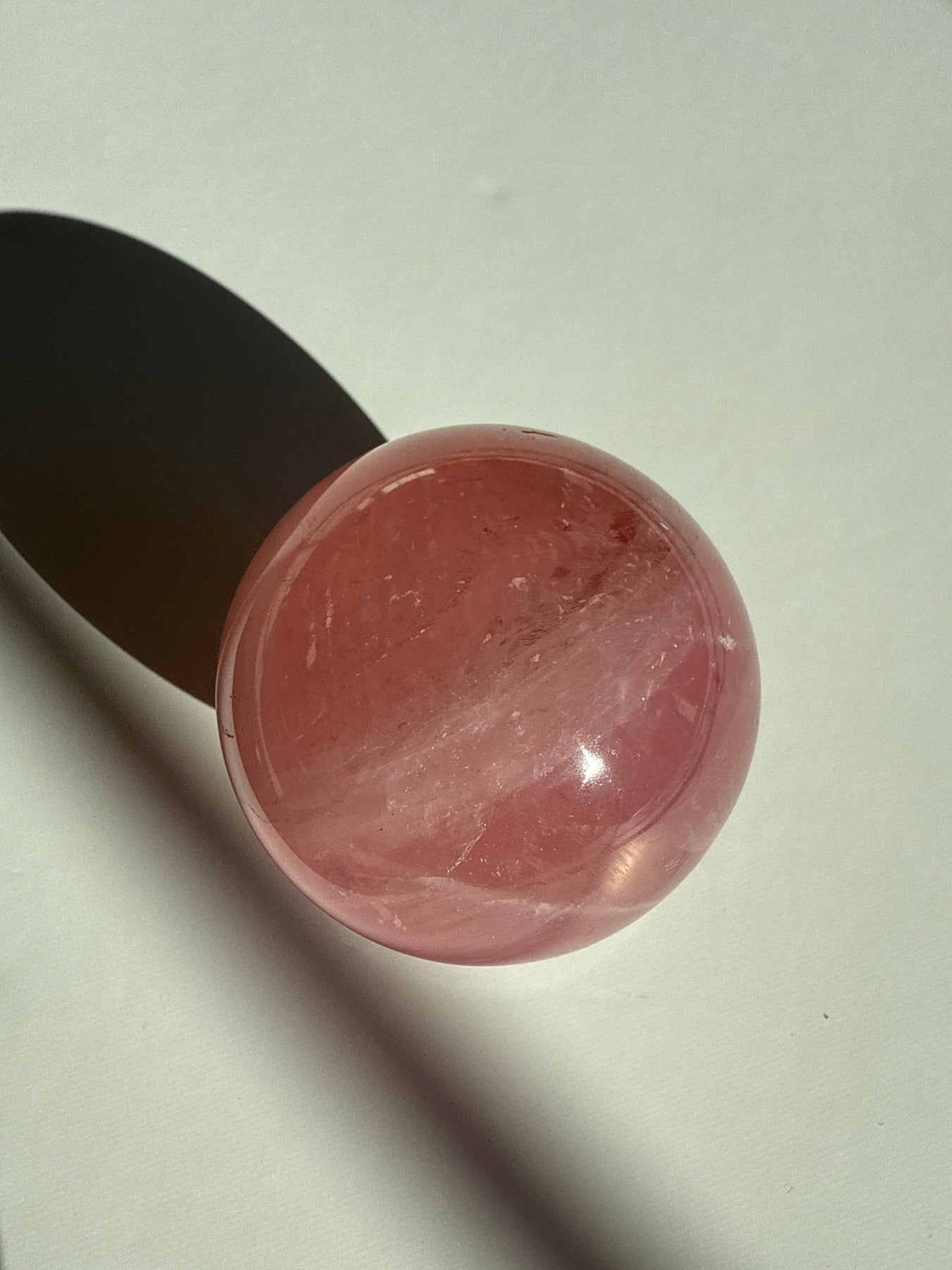 Each sphere has been hand selected for depth of color, internal structure, and the quality of its star refractions. If Rose Quartz already speaks to you, this Madagascar piece is the kind that becomes an anchor in your collection, the stone you reach for when you want emotional equilibrium, softened edges, and a return to your own truth.
