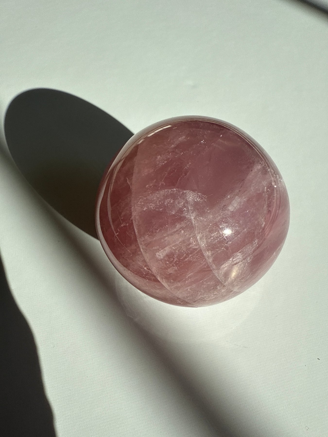 Each sphere has been hand selected for depth of color, internal structure, and the quality of its star refractions. If Rose Quartz already speaks to you, this Madagascar piece is the kind that becomes an anchor in your collection, the stone you reach for when you want emotional equilibrium, softened edges, and a return to your own truth.