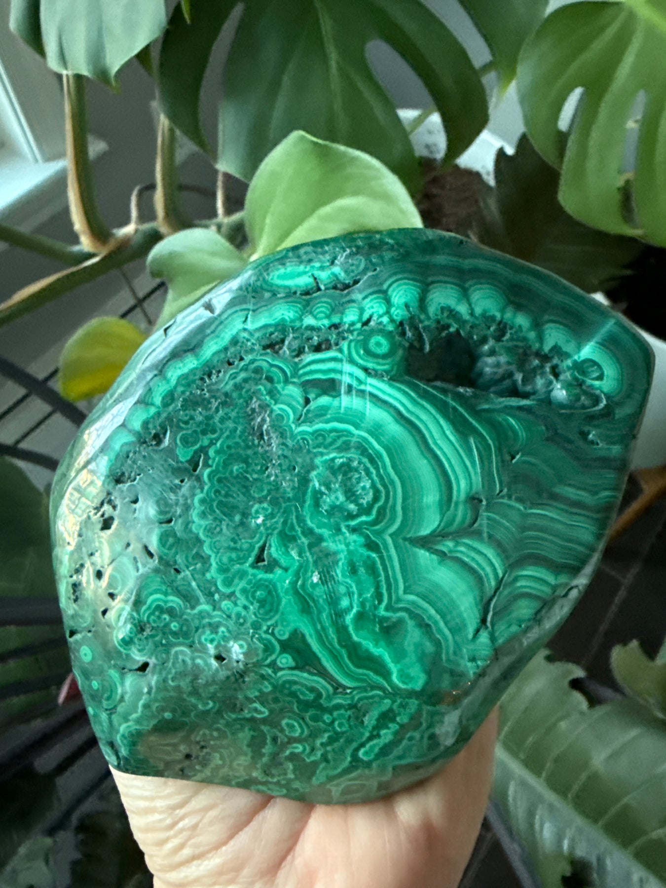 Malachite is known for absorbing dense or stagnant energy, taking in emotional residue and patterns that keep you in cycles you no longer want to repeat. Because it holds so much, it needs regular cleansing so it can continue to support you with clarity and strength.