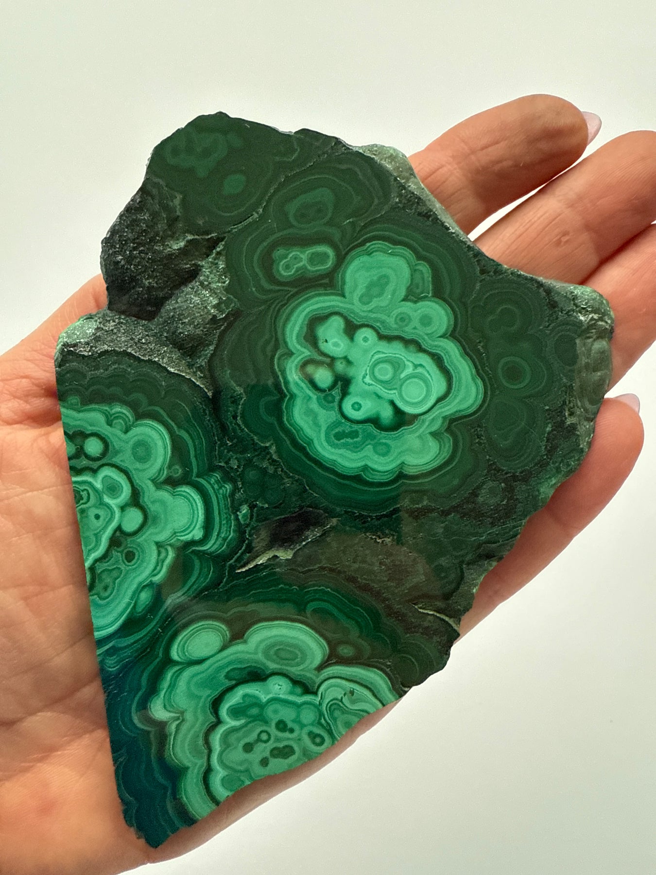 Malachite is known for absorbing dense or stagnant energy, taking in emotional residue and patterns that keep you in cycles you no longer want to repeat. Because it holds so much, it needs regular cleansing so it can continue to support you with clarity and strength.