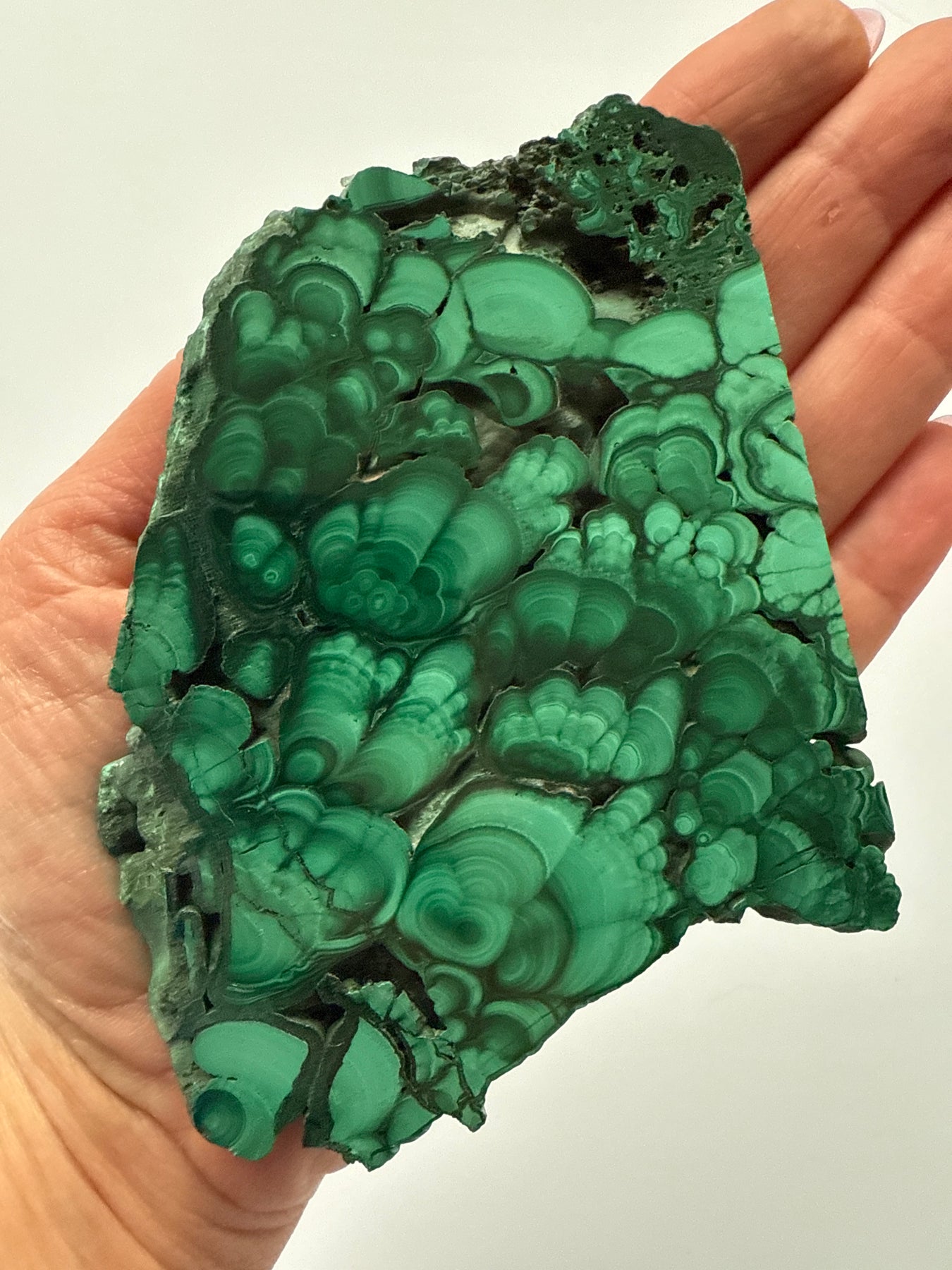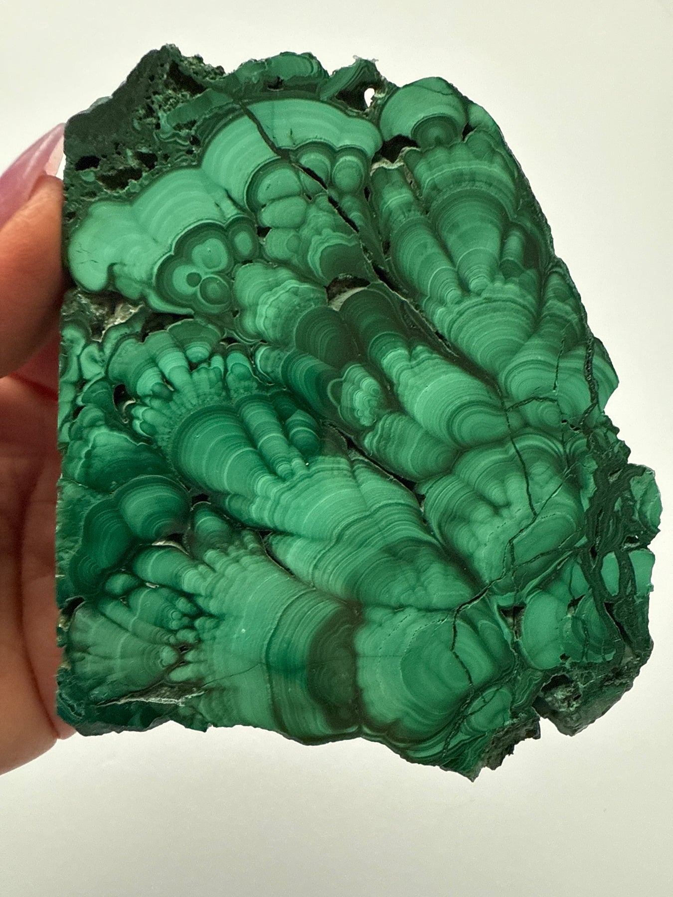 Malachite is known for absorbing dense or stagnant energy, taking in emotional residue and patterns that keep you in cycles you no longer want to repeat. Because it holds so much, it needs regular cleansing so it can continue to support you with clarity and strength.